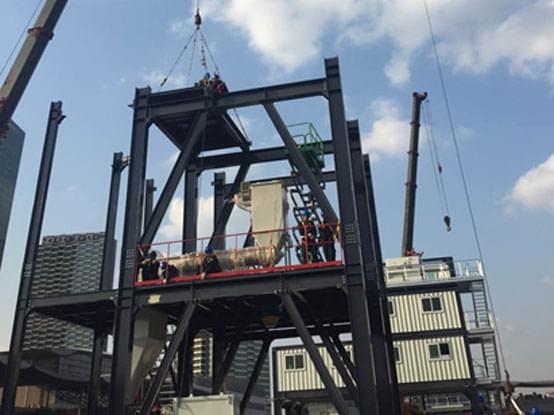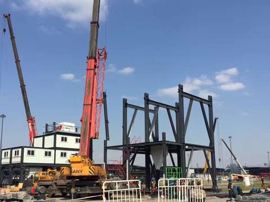 今天是上海寶馬展南方路機展品進場安裝的第三天。在安裝團隊成員間的積極配合下,各項安裝工作按計劃進行中,瀝青混合料攪拌設備和干混砂漿攪拌設備主樓基礎層已經(jīng)搭建起來。